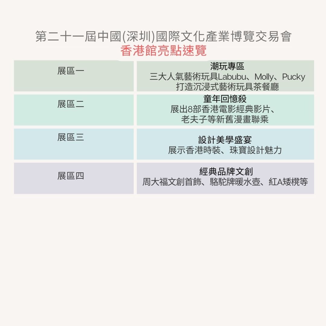 第二十一届中国(深圳)国际文化产业博览交易会(下称“文博会”),将于5月22日至26日在深圳举办。当中,香港特区政府在文博会策划香港馆,以“香港原来咁有型”为主题,展现香港的多元文化。今届香港馆有什么亮点?