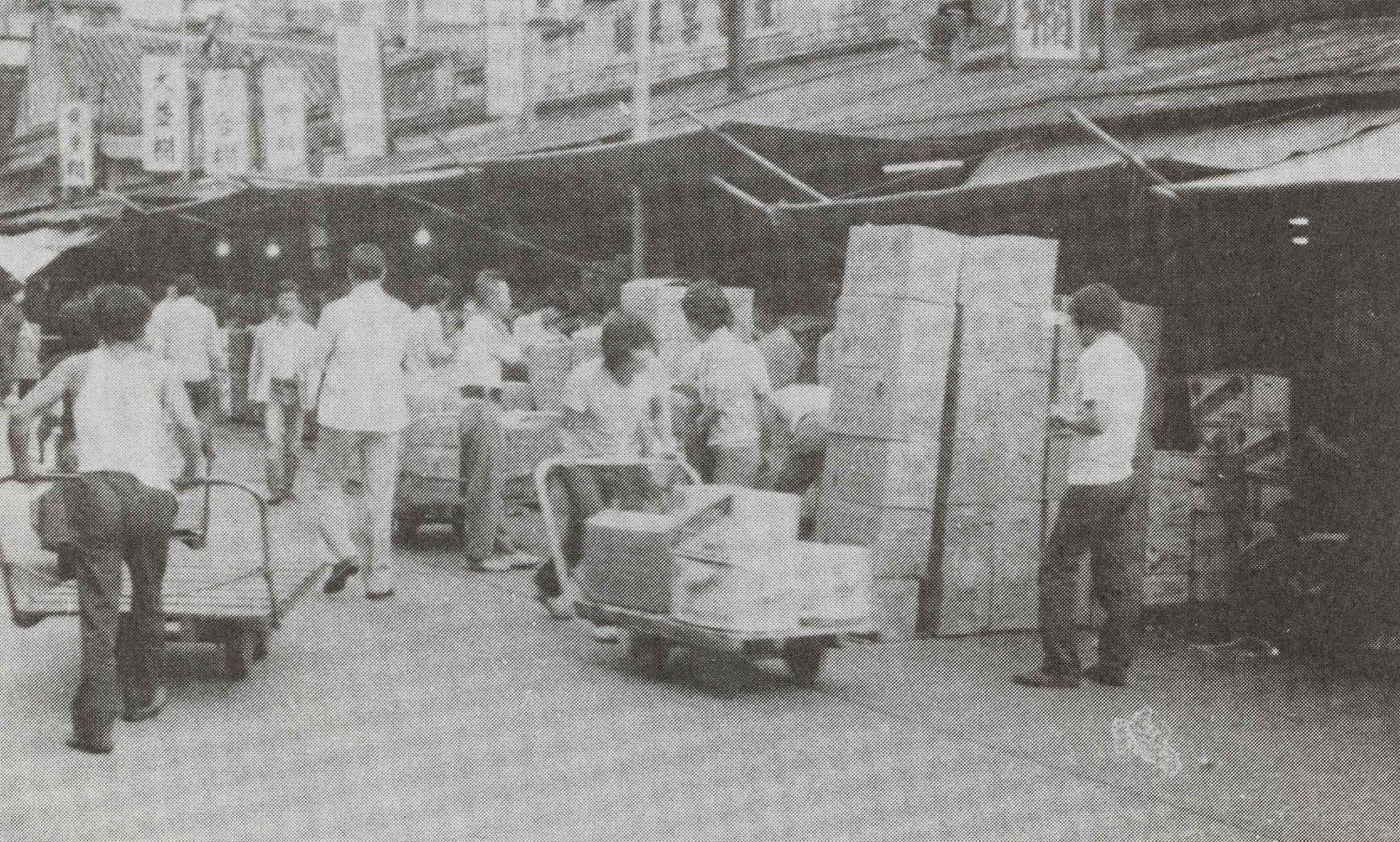 每当油麻地的居民上床休息之际,果栏一带依旧是灯火通明,工人们正准备展开忙碌的一天。由昔日的木头车、手推车,以至今天的唧车,将一箱箱重甸甸的水果从货车上搬下来,再快速地穿梭马路街头,搬运到果栏。而栏商就会盘点暂时存放在街上的货量,又要跟前来选购水果的客户议价。