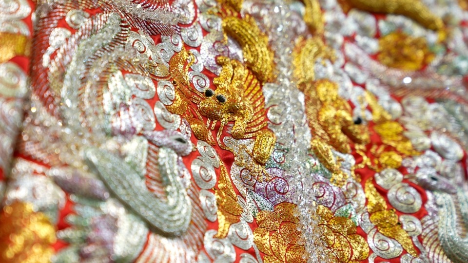 刺绣反映了一条裙褂的价值。为了配合刺绣,由选料、剪裁到缝合,都要配合刺绣而作出调整。