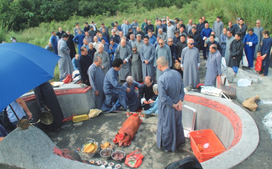 长衫在新界传统宗族社会中有重要的社会意义,图为锦田邓氏宗族成员穿着长衫祭祖。