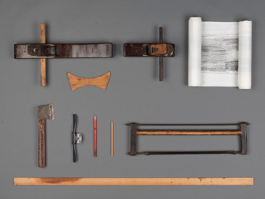 第二是“斫”,意思是锯出琴型。师傅在木材和纸样上绘好琴式后,会将面板修挖成琴坯,锯出琴型,再用刨修整琴的底面和弧度。