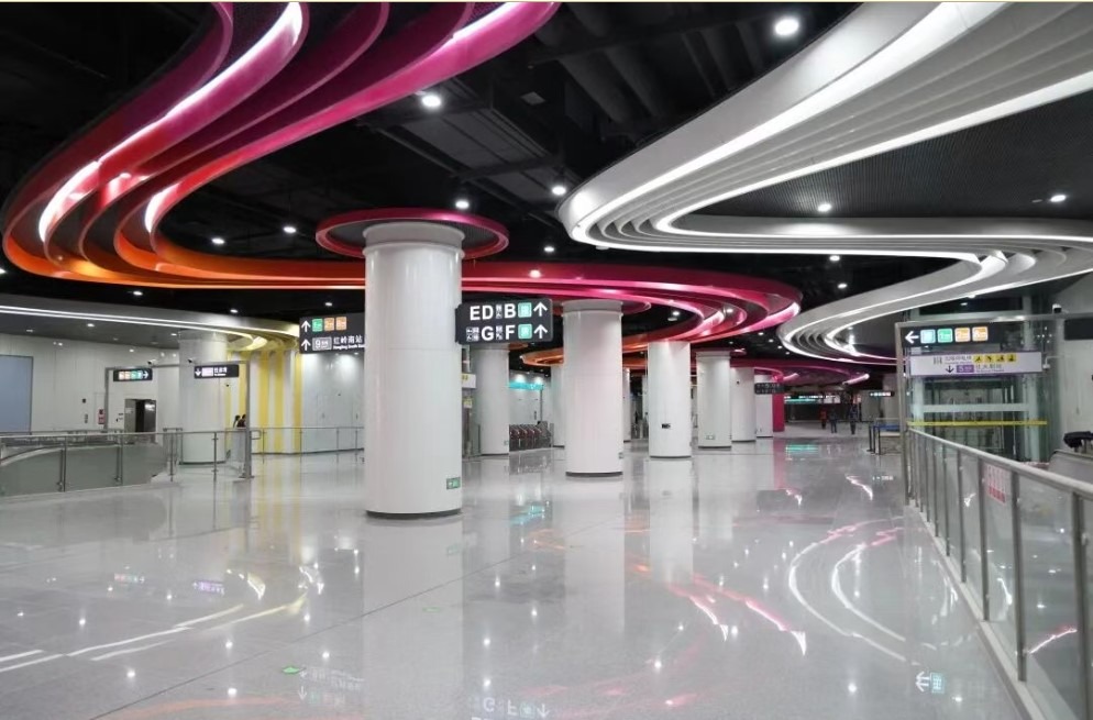 车站的技术和设计也有亮点。大康站在建设中采用了全国最大规模的全装配式车站技术,就像“搭积木”一样建造地铁车站的先进技术。它将传统在工地现场浇筑混凝土的施工方式,转变为在工厂预制标准构件,再运送到现场组装成型。车站设计则深度融合了客家围屋、半月池等文化元素,具有浓厚的深圳本土文化特色。