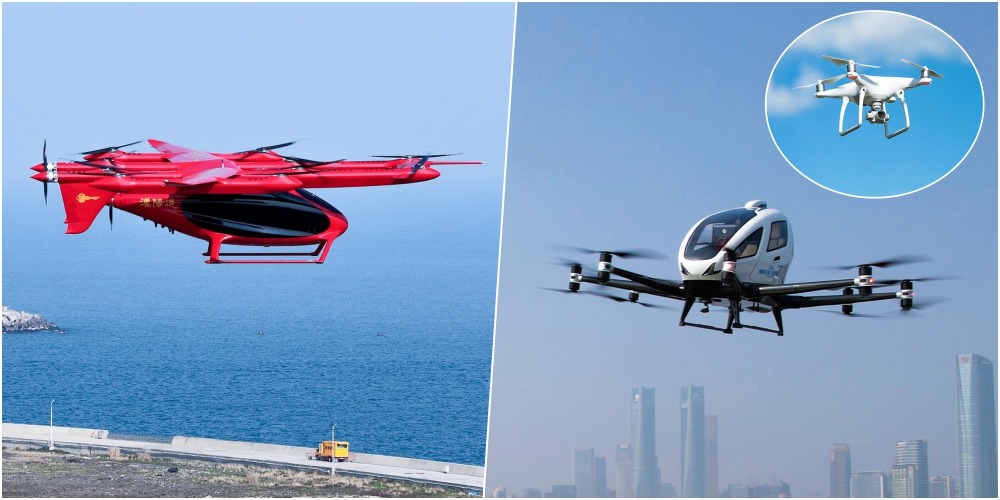近日,峰飞航空eVTOL飞行器飞越了23公里的琼州海峡,从海南海口到广东湛江,用时仅9分钟。这是全国首例吨级无人驾驶eVTOL跨琼州海峡运输。eVTOL飞行器与常见的无人机都是低空经济的重要载体,那么它们有什么不同点呢?