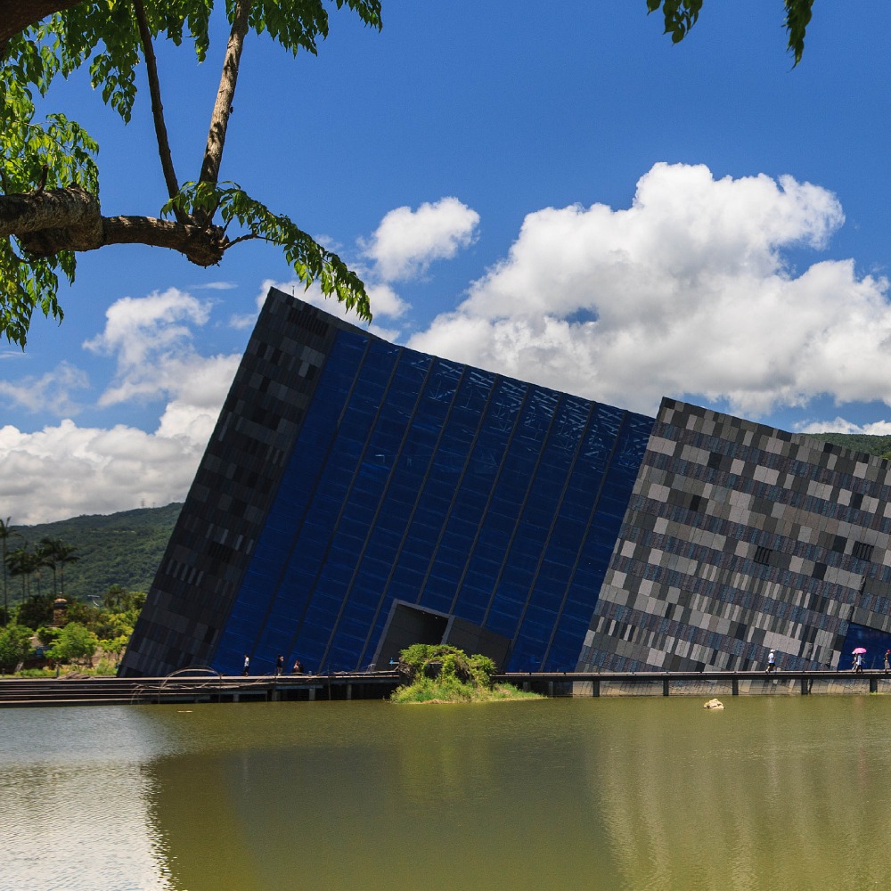 兰阳博物馆建筑主体建造在乌石港礁遗址的西北侧,以便完整保留湿地的自然生态。馆內常设主题展览,借此表现宜兰的地理环境、人文历史以及丰富的自然生态。