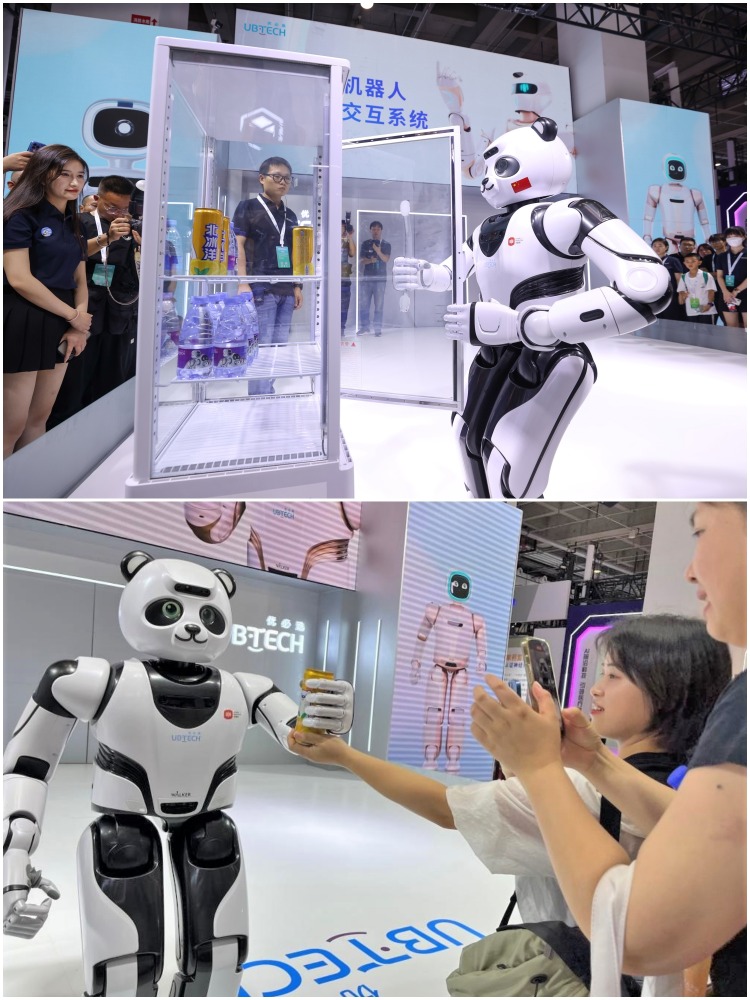 此外,前不久刚刚在成都大运会闭幕式上与50多名演员合作演出的熊猫机器人「优悠」,也来到了这次的世界机器人大会。
