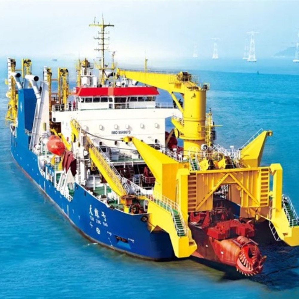 “天鲸号”由中交天津航道局有限公司投资并联合上海交通大学、德国VOSTALMG公司进行设计,由招商重工(深圳)有限公司建造,自2008年4月28日开工,建造周期历时21个月。“天鲸号”建成后成为了中国吹沙填海的利器,无论是装机功率或是疏浚能力均居亚洲第一、世界第三。以“天鲸号”为代表,中国交建拥有了一支由800多艘各类型船舶组成的工程船队,其中主力疏浚船舶100余艘,耙吸挖泥船总仓容量、绞吸挖泥船总装机功率均排名世界第一,是世界最大的疏浚船队。