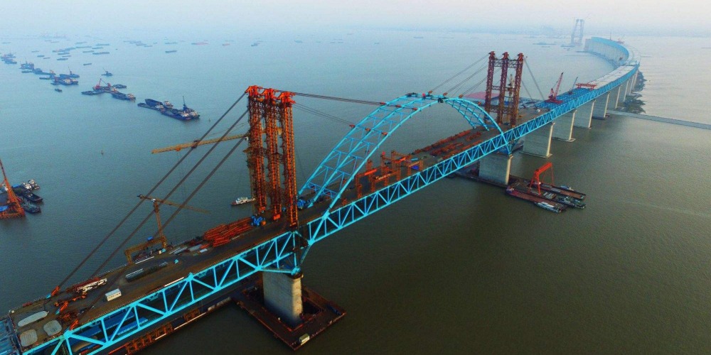 2017年1月21日,沪通长江大桥天生港航道桥胜利合龙。全长11,072米的沪通长江大桥是中国沿海铁路大通道中沪通铁路段的跨长江控制性工程,此次合龙的天生港航道桥位于大桥北侧,主跨336米,是目前世界上最大跨径公铁两用刚性梁柔性拱桥。