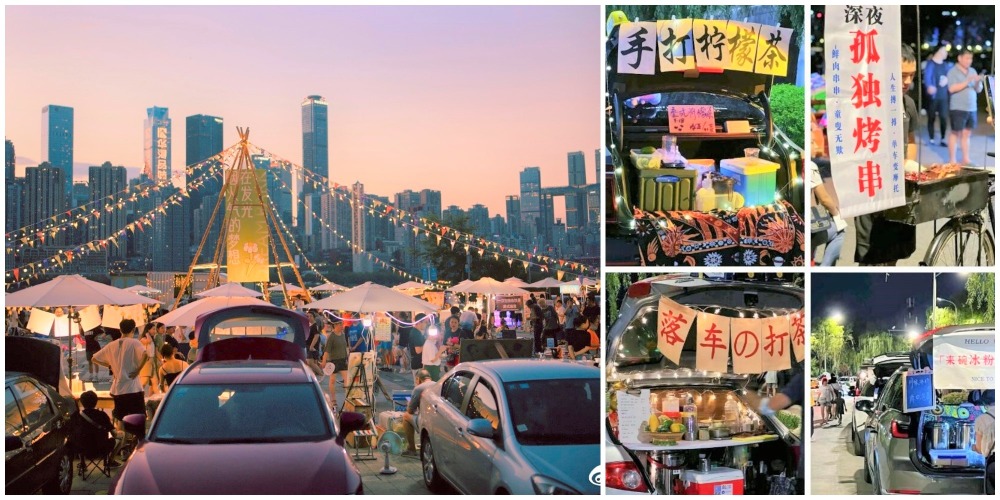 “手打海盐柠檬茶”、“现做手工冰粉”、“正宗南京桂花鸭”……一架架整齐排开的私家车车尾箱,在夜间化身成展示美食饮品等的小空间。在车尾箱市集里,不少车主都会在自己的爱车上,挂上鲜花、公仔或灯泡等装饰品,甚至带上可爱的宠物,费尽心思吸引客人目光。
