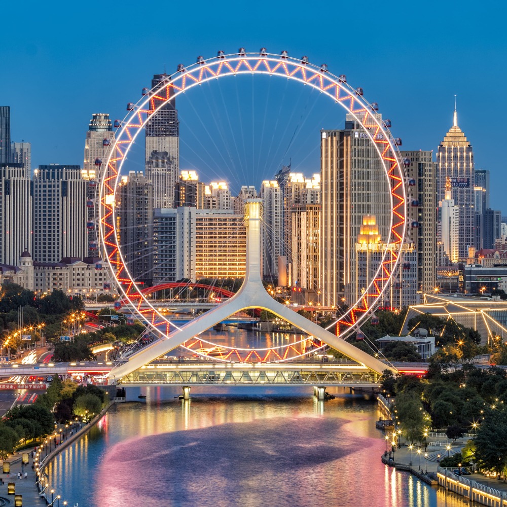 中国有三个世界之最摩天轮,分别是深圳“湾区之光”、南昌“南昌之星”和天津“天津之眼”,其中最特别莫过于“天津之眼”(The Tientsin Eye)。