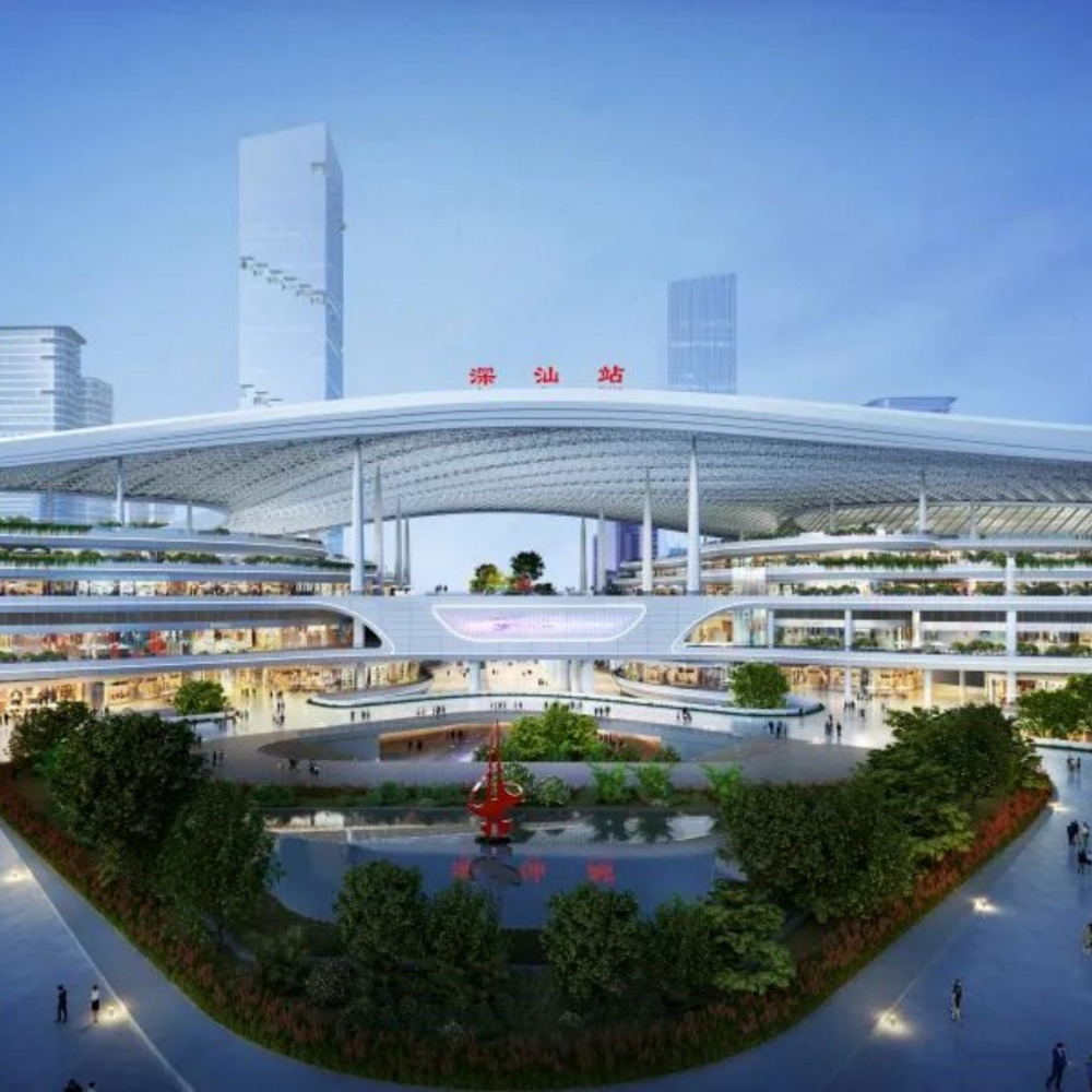 它以“深汕之桥”为设计理念,融入盖上盖下的商业开发,是国内枢纽建设的首创,将打造成为站城一体化发展的典范工程、示范性工程。