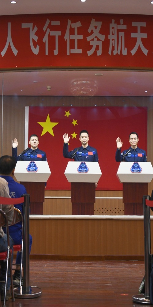 神舟二十号乘组亮相 陈冬任指令长 “一老带二新”