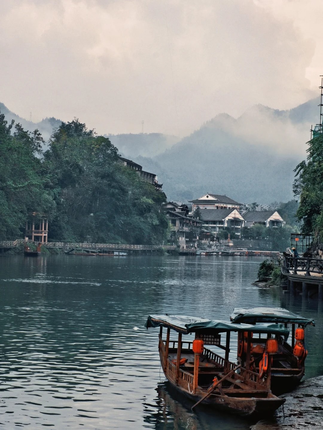 The stilt houses, wind and rain bridges, ferries and river streets are the elements that constitute the unique ancient charm of the town, tranquil and comfortable, poetic and picturesque.