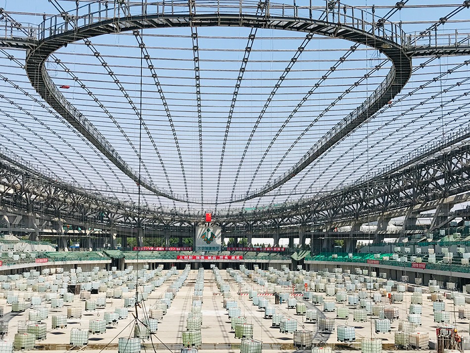 This double-curved saddle-shaped single-layer cable net roof design uses approximately 27 kilograms of steel per square meter, greatly saving materials. The amount of steel used is only a quarter of that used in the traditional steel roof structure.