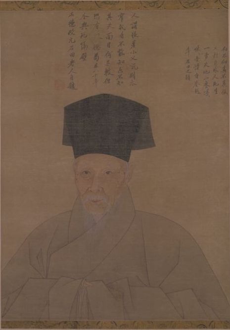The "Ming Dynasty Scholar" wearing a headscarf, and a cross-collar wide-sleeved robe reminds people of "Portrait of Shen Zhou".
