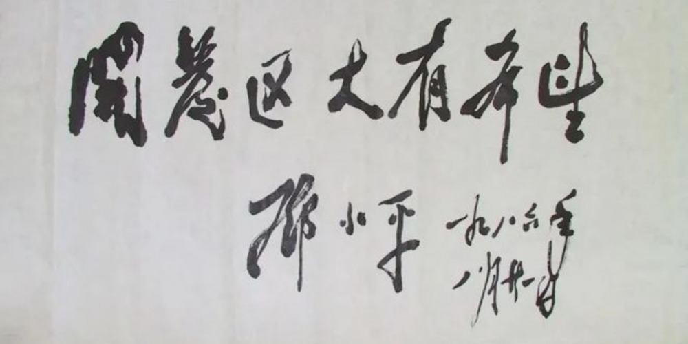 On August 21, 1986, Deng Xiaoping (鄧小平) visited the Tianjin Economic-Technological Development Area (TEDA) and inscribed the words, "Development Zones are of Great Promise" (開發區大有希望).