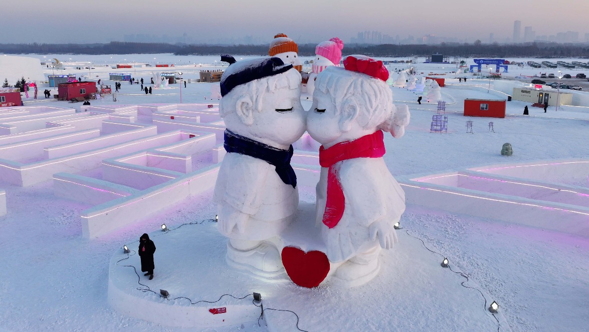 Recently, the "Erbin Heart Island" ice and snow park (爾濱之心歡樂島) is officially opened. The park, themed around "Love," has built 56 heart-shaped landscapes for visitors to check in, creating an atmosphere full of love.