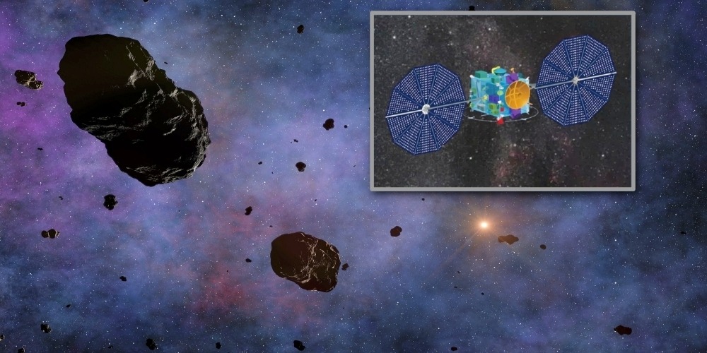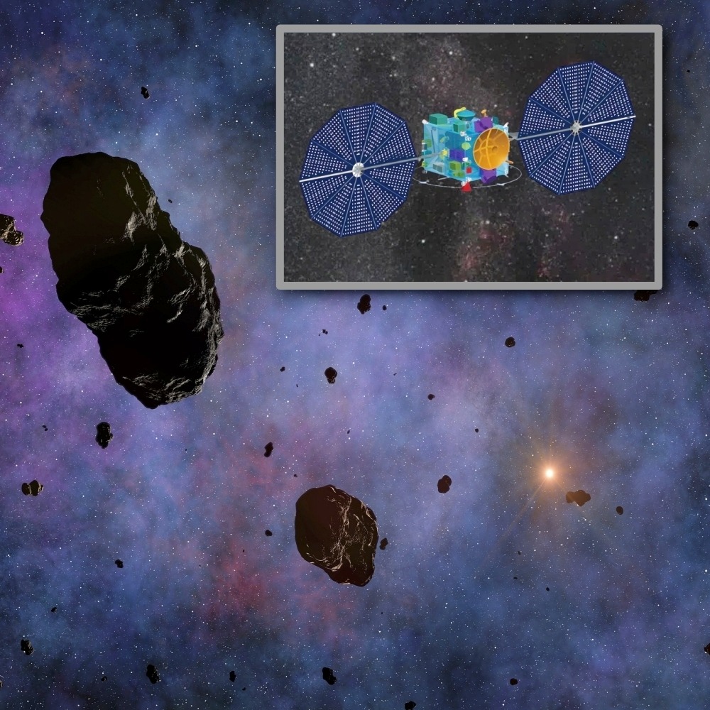 It also includes communication, sampling devices, and sample transfer devices, utilising a dual-mode propulsion system with ion electric propulsion and chemical thrusters.