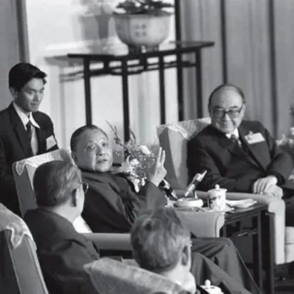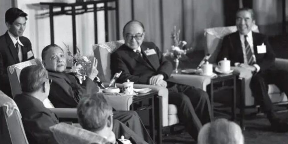 On April 16, 1987, Chinese leader Deng Xiaoping met with members of the Hong Kong Basic Law Drafting Committee.