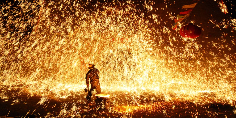 春節買不起煙花怎麼辦?500多年前,買不起煙花的鐵匠們發明了屬於自己的新年「煙花」——「打樹花」,將1,600℃高溫的鐵水潑灑到古城墻上,火花迸濺, 如星光萬點,蔚為壯觀。這項河北省非物質文化遺產在古裝劇《延禧攻略》中也有登場,給觀眾們留下深刻印象。不過,由於「打樹花」表演十分危險,加上收入有限,這門文化遺產的傳承人愈來愈少。在其發源地河北暖泉鎮,也僅餘4名鐵匠會這門古老的技藝,面臨失傳。
