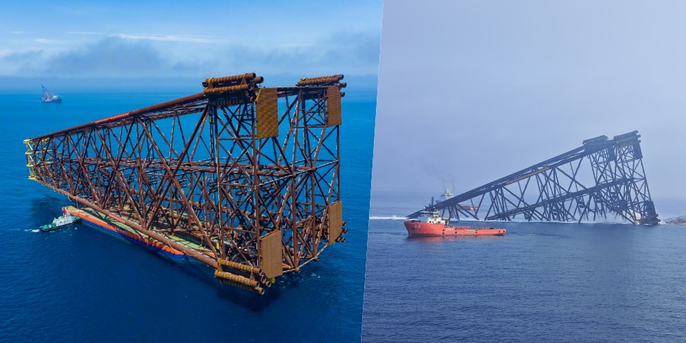「海基二號」入水後,再通過導管架注水和起重船輔助相結合的方式,實現扶正坐底和精準就位。