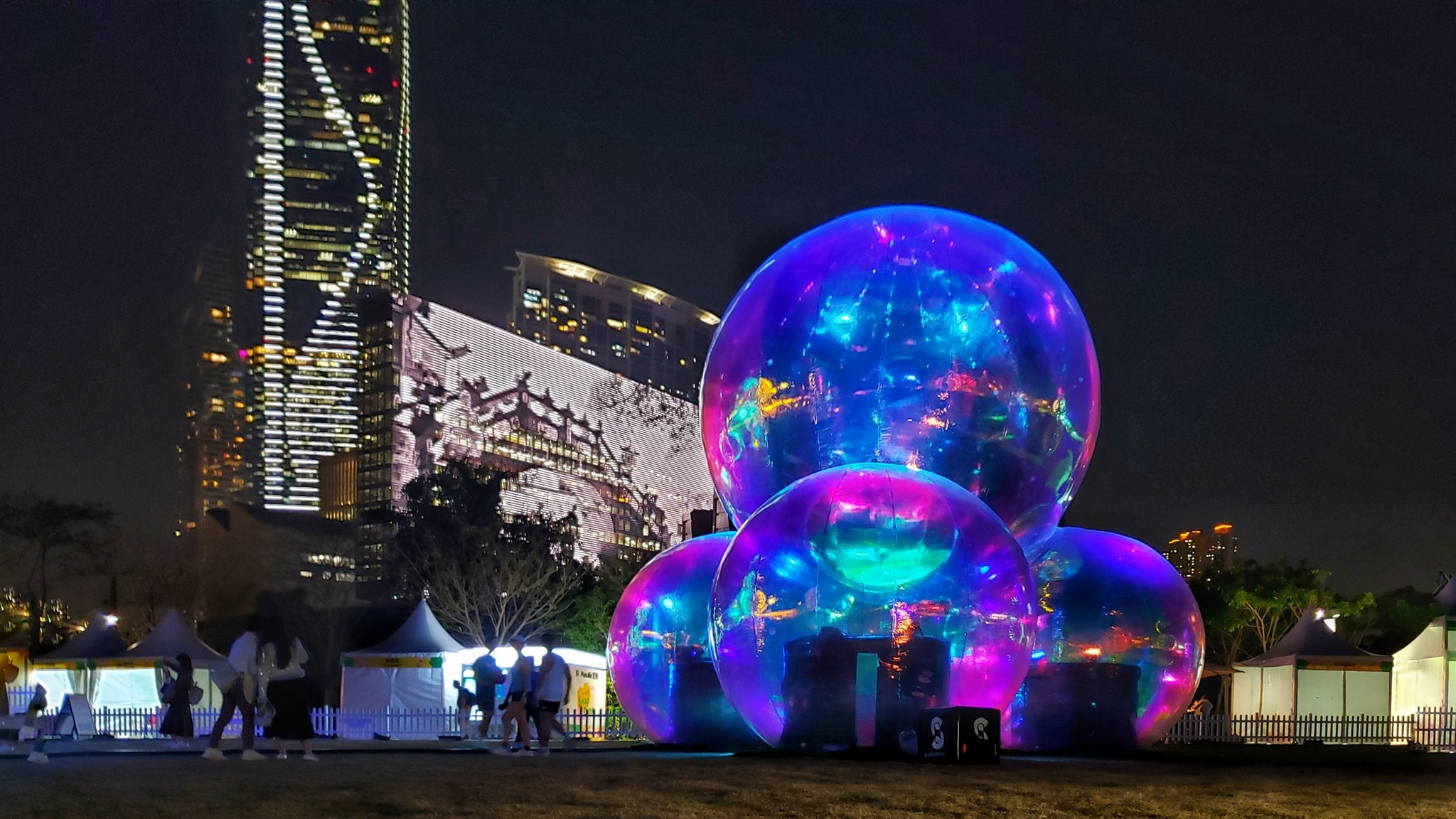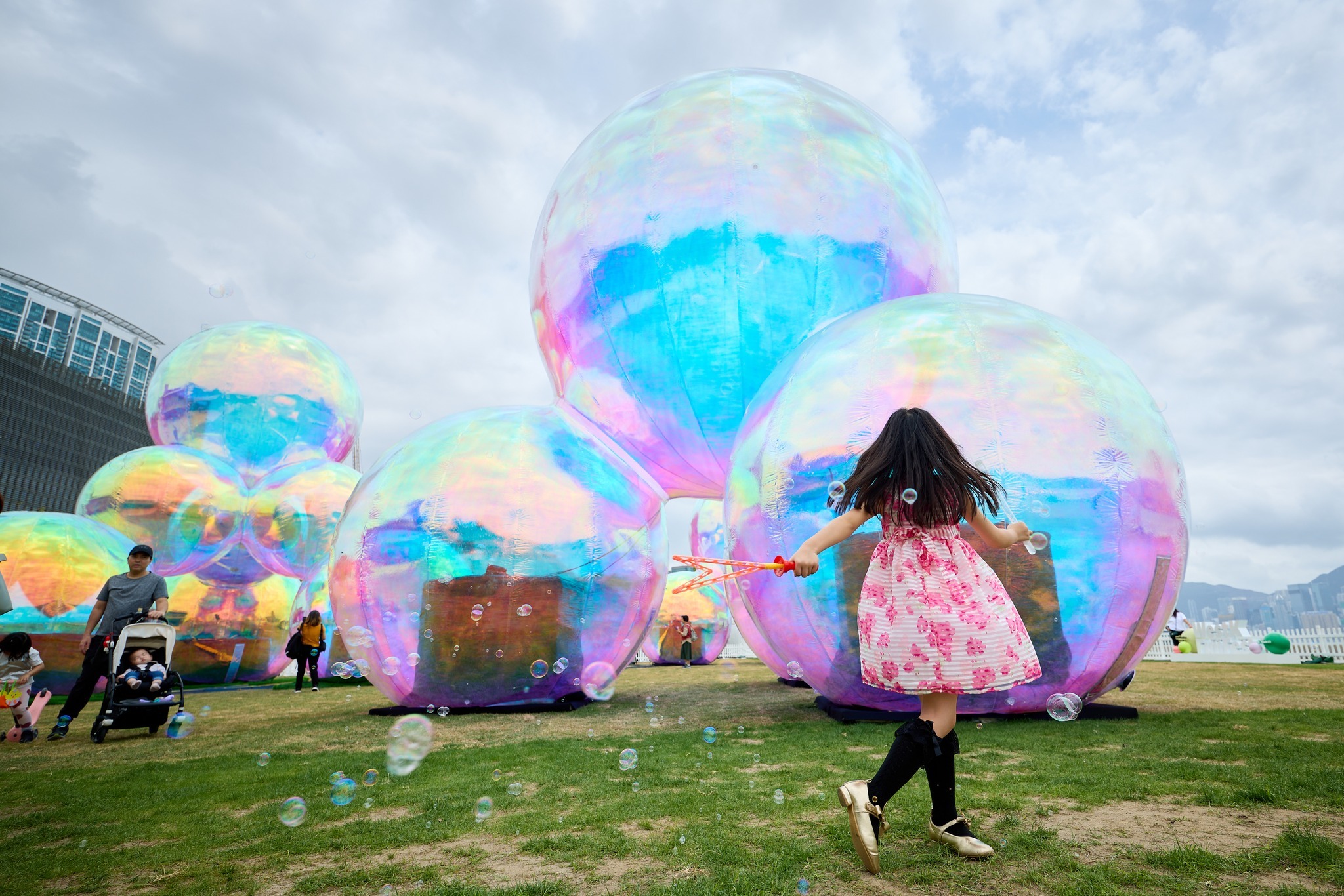 泡泡的概念來自「肥皂泡」。澳洲藝術團隊Atelier Sisu想要留住肥皂泡的美麗瞬間,讓市民穿梭當中感受奇妙一刻。這個展覽還是得獎的人氣作品,曾在悉尼、新加坡等四十多個地區展出。