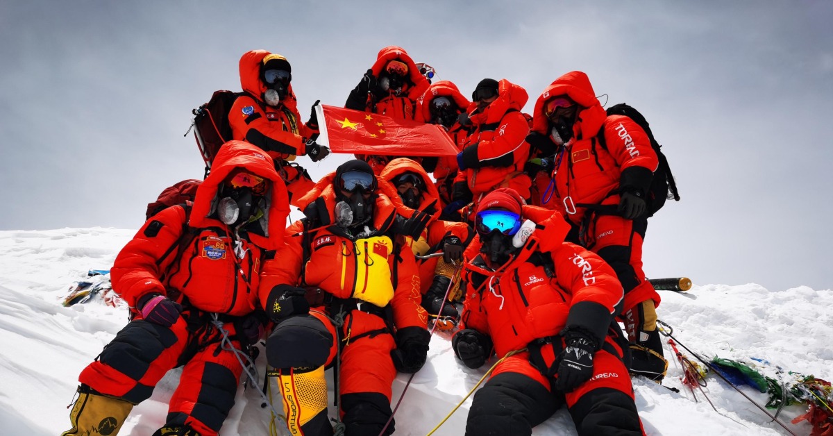 隊員們背着超過15公斤的物資和測繪工具、穿戴幾公斤重的登山靴,每一步都異常艱難。尤其到了珠穆朗瑪峰海拔7,000米以上的地方,每走一步,都要休息半分鐘;每次呼吸,喉嚨和胸口都會劇痛。最終,5月27日上午11點,8名測量登山隊員經過9個小時的攀登成功登頂。