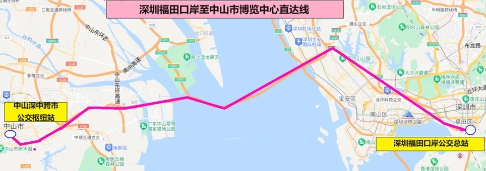 途經站點:深圳福田口岸公交總站、中山博覽中心站