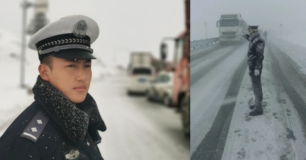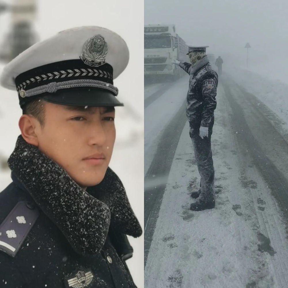 相片中的主角是24歲的藏族小夥白瑪木洛,於2018年加入交通警隊,一直在四川藏區一個名叫折多山的地方工作。