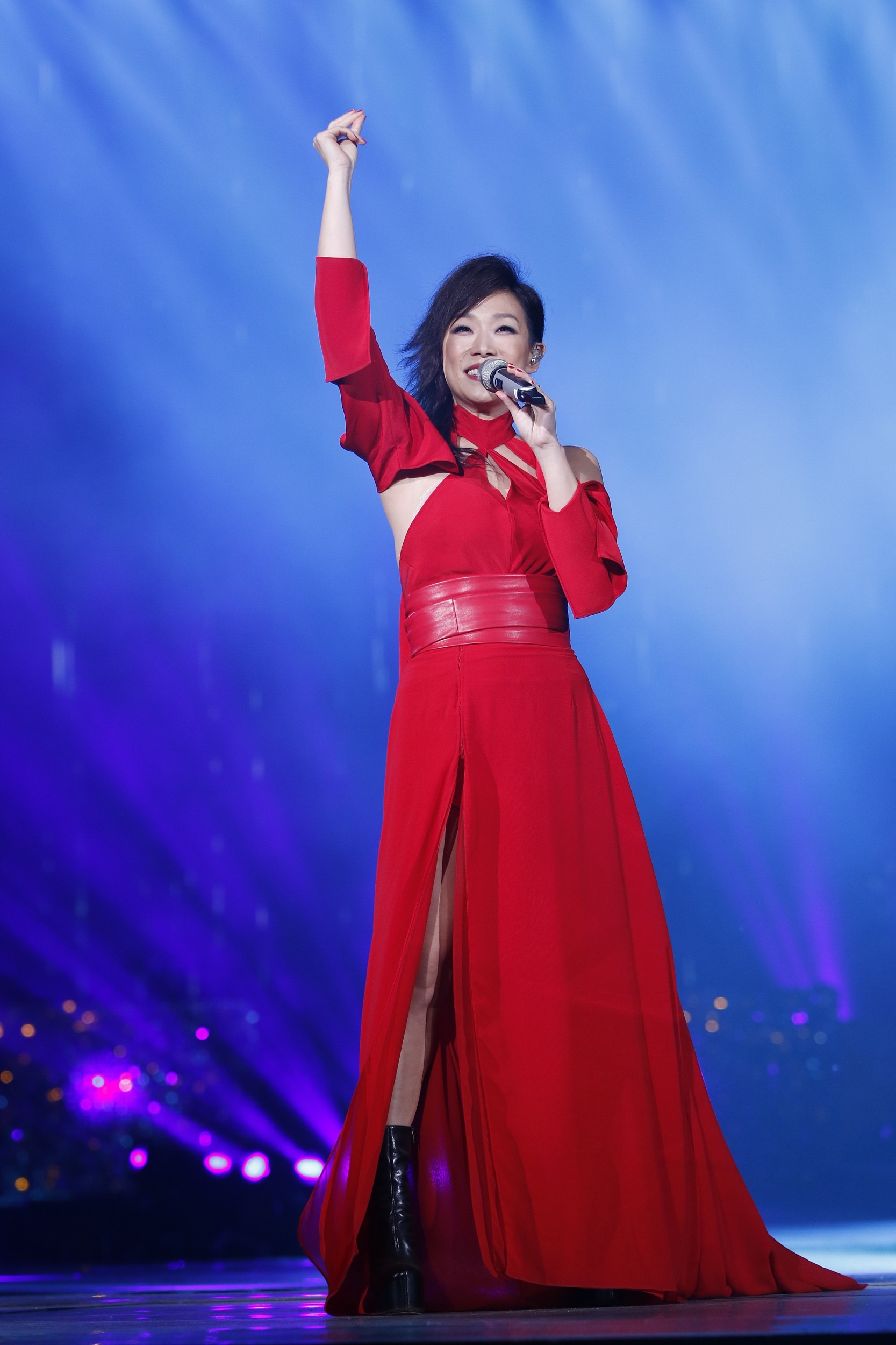 林憶蓮直言現場演唱是很美妙的事情,可以感受跟觀眾的現場互動。圖為2017年香港演唱會。