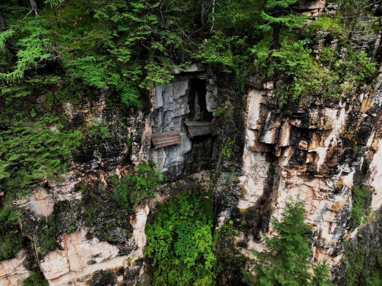寧武石門懸棺位於山西忻州蘆芽山一處幽僻的山谷内,是中國北方地區至今發現的唯一一座崖葬群,建造時間不詳,極具考古意義。