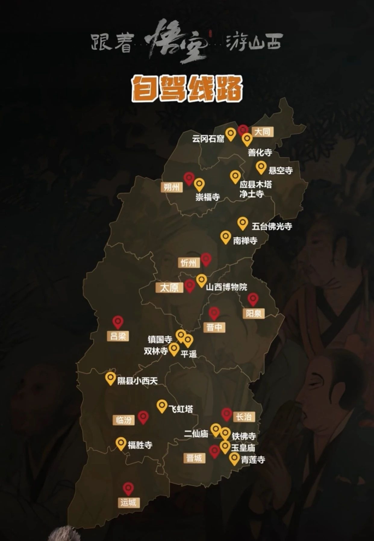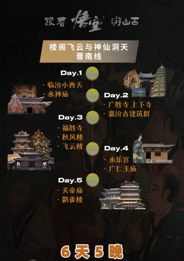 除了以上介紹的同款取景地外,山西文旅也推出了多條「跟着悟空遊山西」主題路線,包括全線路線、3條主題路線以及自駕路線。
