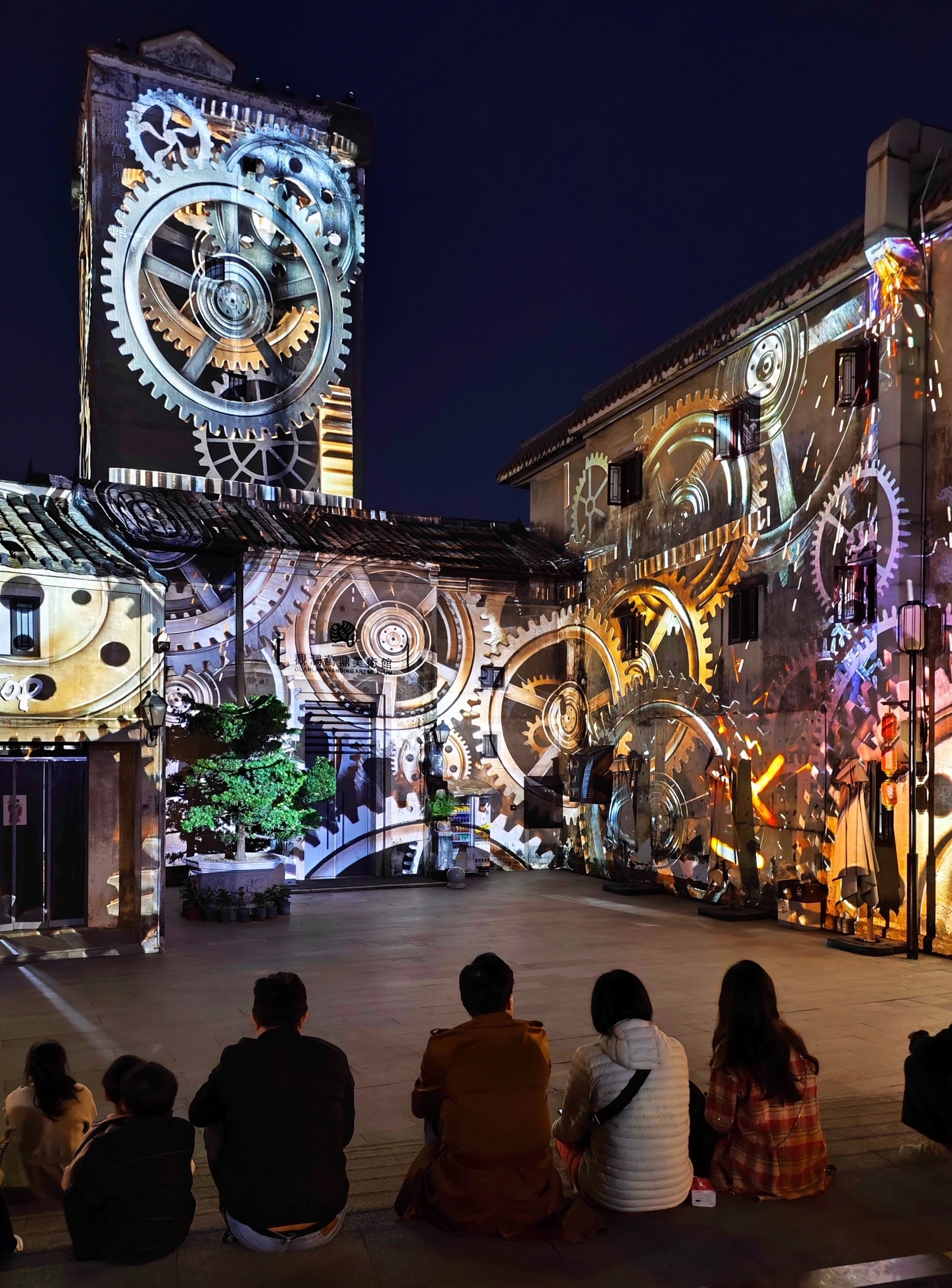 中秋期間,這裏的活動特別多,必看的有燈光秀,是觀瀾古墟的招牌項目;「彩虹路」有光影彩虹流動,令人驚艷;而梵高的「星空」更是震撼,四面音樂環繞,享受醉人時光。