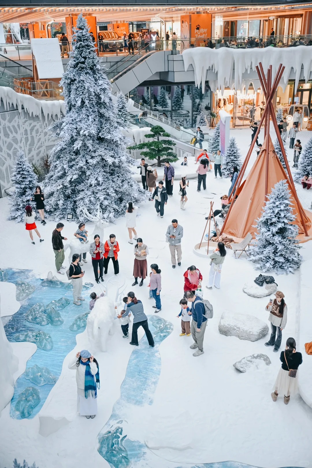 與此同時,在特定時間段内,展區還會噴灑人造雪,打造白雪紛飛的效果,就算不去北方也能輕鬆看雪,相信能帶給大家一個難忘的「南國雪鄉」體驗。