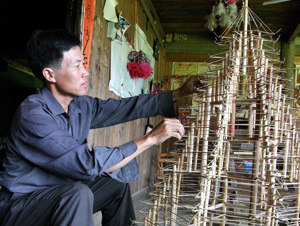 年逾六旬的非遺傳承人楊似玉,自幼隨父親學習侗族建築技藝,有「侗族魯班」之稱,多年來設計吊腳樓、鼓樓、風雨橋、涼亭等侗族傳統木建築超過300座,遍布湖南、貴州、廣西等地。1997年廣西政府送給港府的「同心橋」木雕,就來自他的設計。