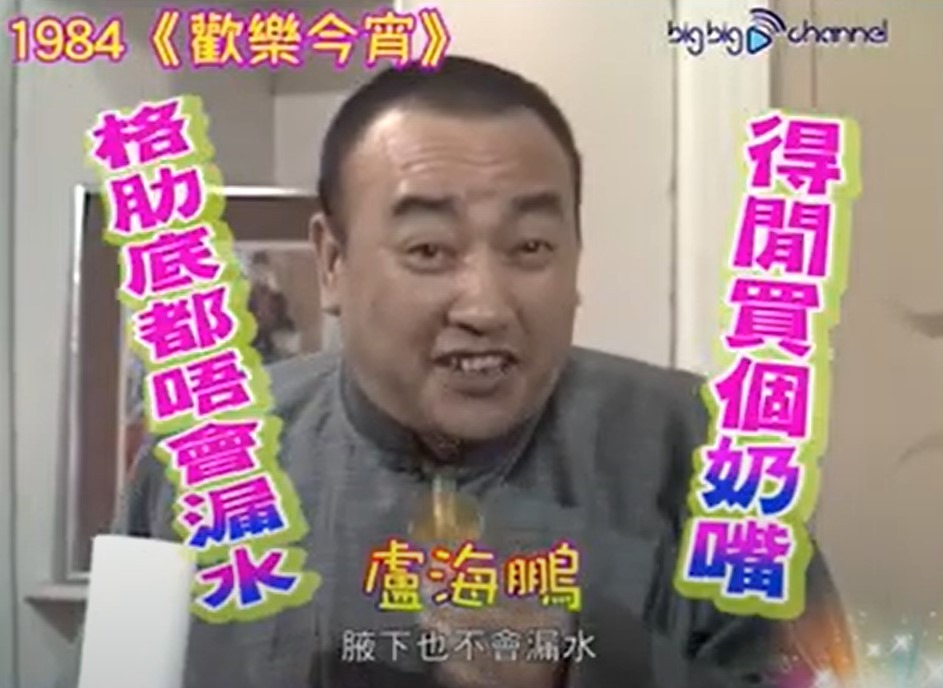 除了扮嘢外,盧海鵬在《歡樂今宵》擔演的趣劇《蝦仔爹哋》同樣經典。尤其每次開場時,盧海鵬都會講出押韻金句,當中的語句,總會令人忍俊不禁。
