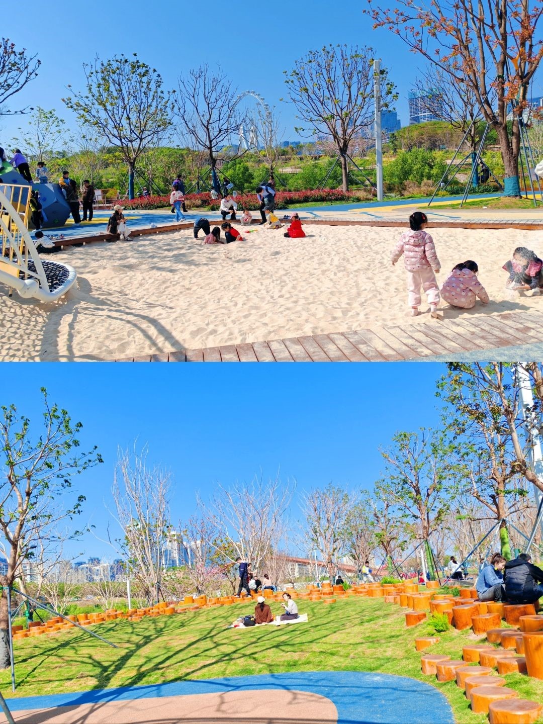 這裏還有人造沙池、攀爬繩索、鞦韆等遊樂設施,還有大片大片的花園,真是一個令人樂而忘返的遊樂園,而且還是免費的。
