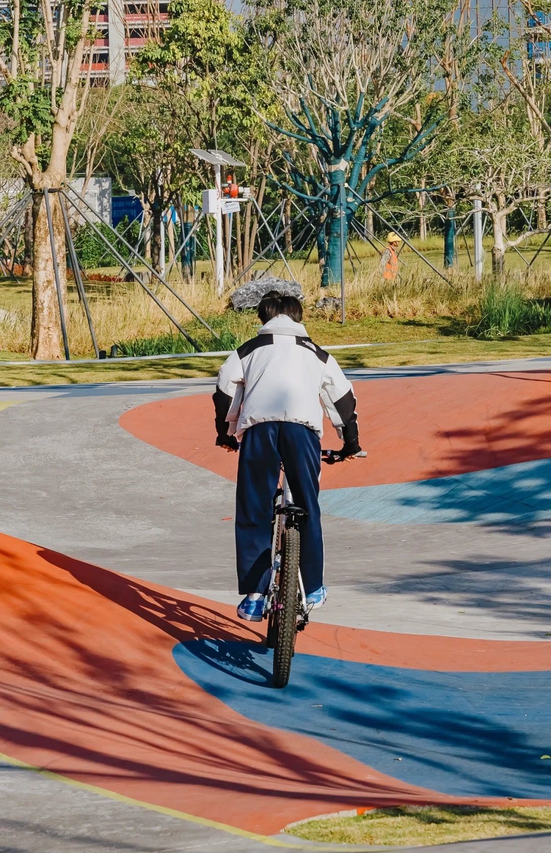 這裏的最大特色,就是波浪綠道,不單色彩豐富,波浪起伏的人造綠道適合踏單車、滑板車,刺激有趣。小朋友在波浪綠道上飛馳,都能感受到踏單車的樂趣。
