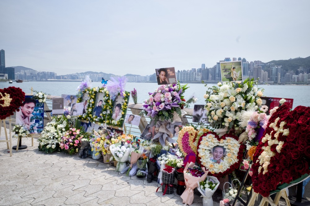 今年4月1日,在尖沙咀星光大道上,歌迷也擺放不同的紀念品和鮮花紀念偶像張國榮。