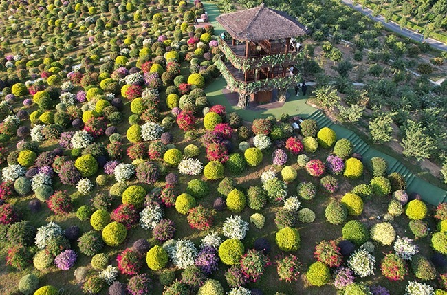 必打卡的有秘境花廊隧道,穹頂被繡球花瀑完全覆蓋,陽光穿透花瓣形成獨特的美景。
