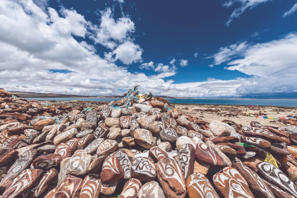 未及徒步環湖的遊客,不妨圍繞扎西半島兜轉一圈,細細品賞幾經溶蝕的喀斯特地貌及岩穴中潛藏的原始壁畫──當地人稱這轉島的功德,可是能夠與轉納木錯等量齊觀的!
