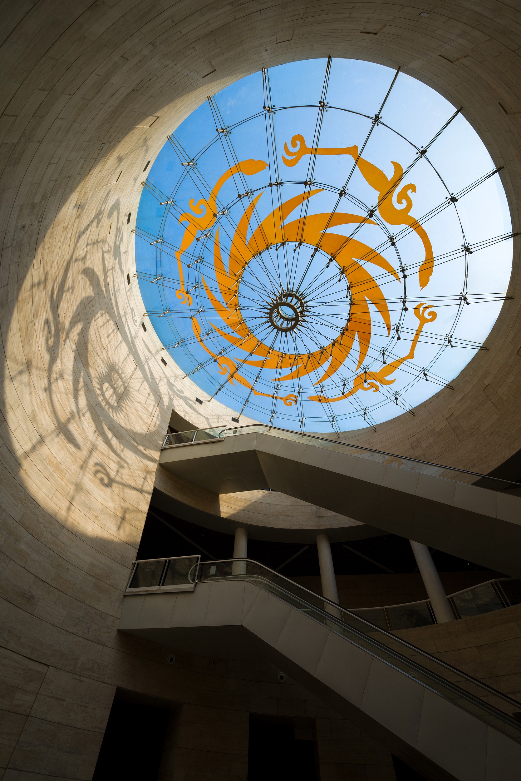 金沙遺址博物館位於成都金沙遺址之上,總面積約30萬平方米,博物館主體採用獨特的斜坡式覆土造型,就像大地被掀起了一角,仿佛代表了沉睡文明的蘇醒。