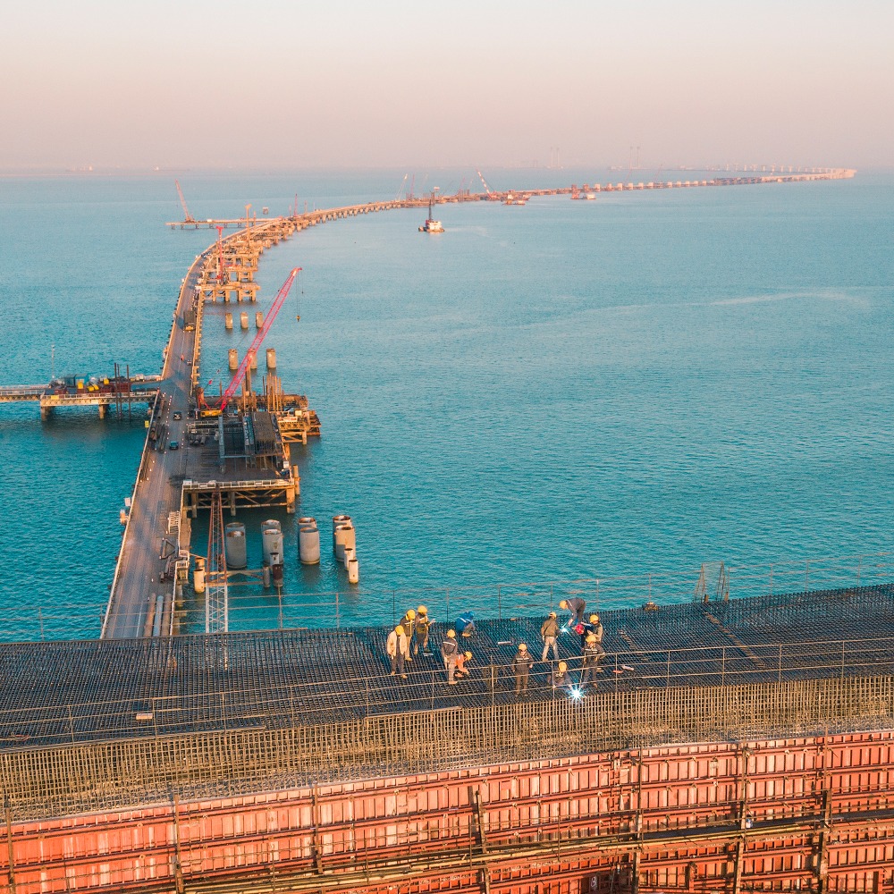 跨海大橋和人工島建設同樣不容易。