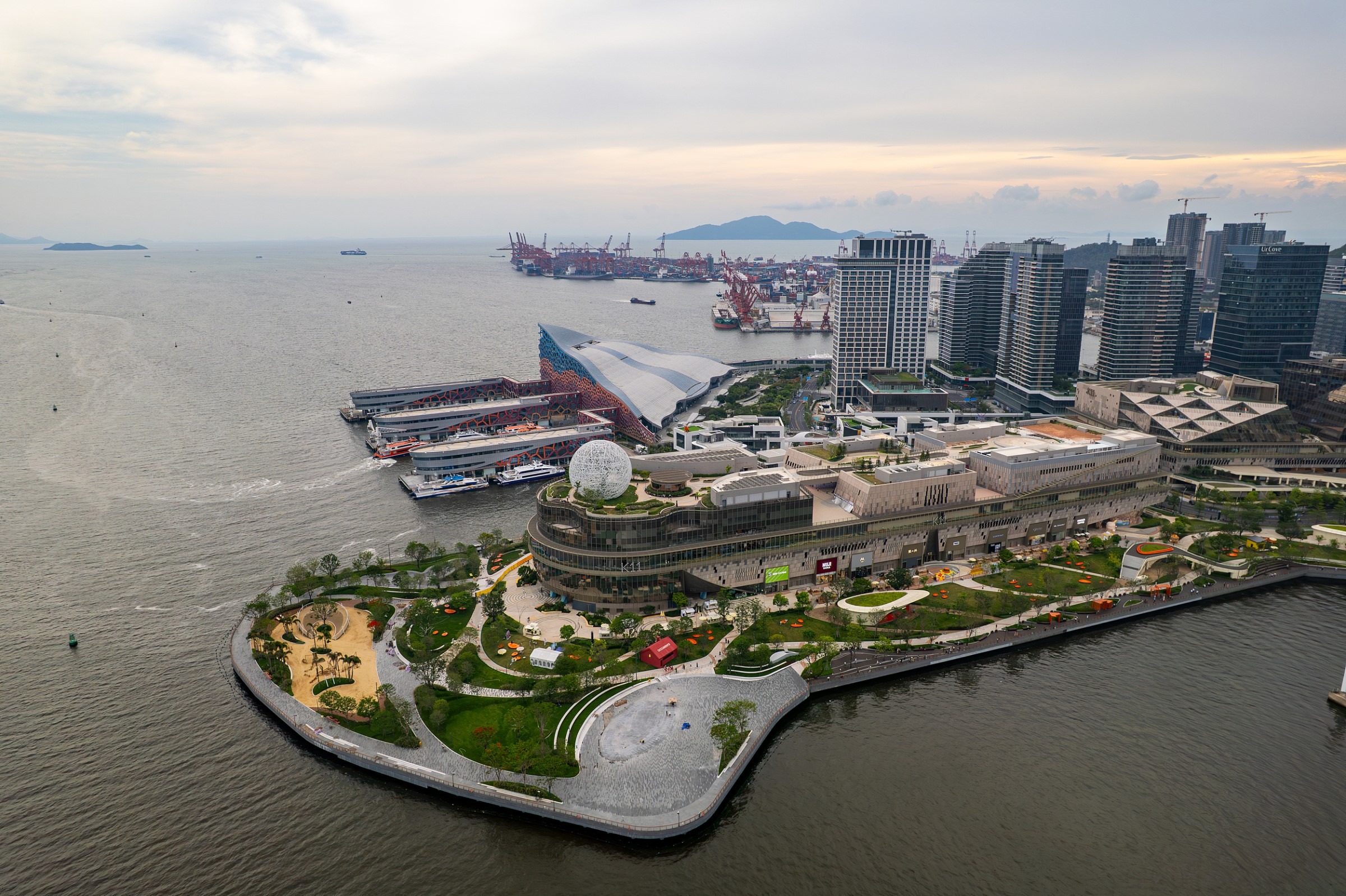 郵輪建築採用開放式布局,融合玻璃幕牆與波浪型設計,與大海呼應。每一層「甲舨」上,都設計成觀海露台,能夠飽覽270°海景。郵輪背後則是漫步式山體棧道,商場地下有隧道連接珠海愛情郵局、海濱泳池等知名旅遊景點,是珠海超級文旅新地標。
