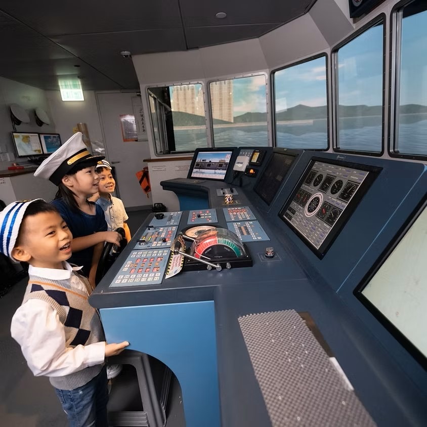 對於孩子來說,最有吸引力可能是「海洋探知館」的模擬駕駛室。這裏可讓人化身舵手,一嘗駕駛貨櫃船、高速船或天星小輪的滋味。