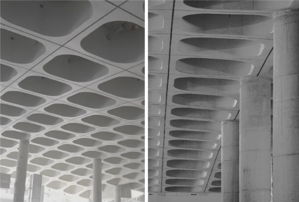 為了讓建築融入大自然環境,設計師特意把外立面以客製化花崗岩條精密拼接,紋理如同海浪般流動,與旁邊的公園綠植、深圳灣水景形成呼應,彷彿建築本身就是自然景觀的一部分。