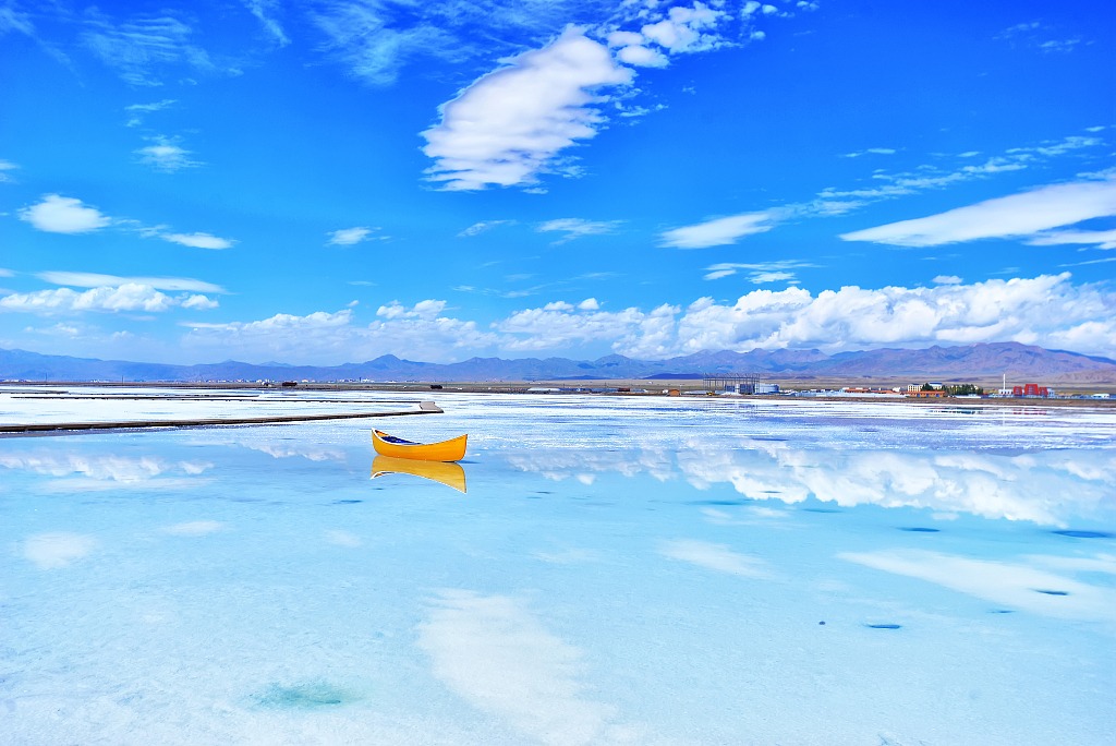 中國旅遊熱點「茶卡鹽湖」位於青海省海西州烏蘭縣茶卡鎮,茶卡鎮是柴達木盆地第一鎮。「茶卡」源自於藏語,意即鹽池,蒙古語之中則稱作「達布遜淖爾」,意思是指青鹽的海,古往今來茶卡鹽湖因盛產「大青鹽」而享負盛名。由於茶卡鹽湖是固液並存的滷水湖,整個湖面波紋小而平靜,因而容易產生鏡面反射,令茶卡鹽湖在藍天白雲、雪山草地的映襯下形成「天空之鏡」的奇觀,由此茶卡鹽湖亦有中國「天空之鏡」美譽,是青海旅遊的金名片。