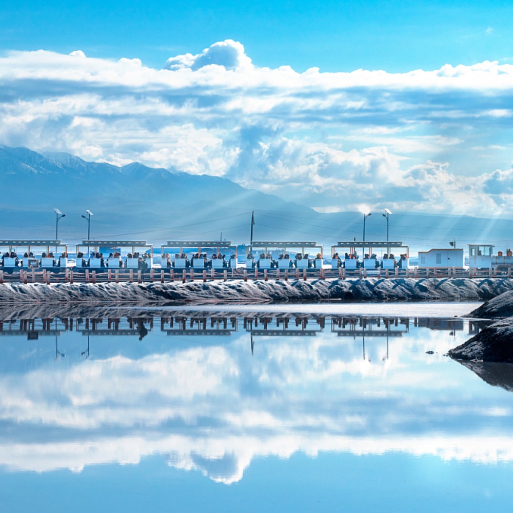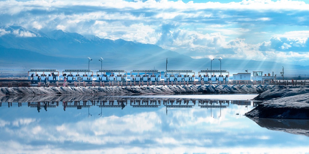 除了到湖面的「天空之鏡」拍照之外,茶卡鹽湖景區的其他旅遊體驗亦是相當豐富、有趣。當中不能錯過的就是有媲美「千與千尋」水上小火車的「鹽湖小火車」,遊客乘坐它們穿梭景區,在美麗景色伴隨下猶如置身夢幻的童話世界。
