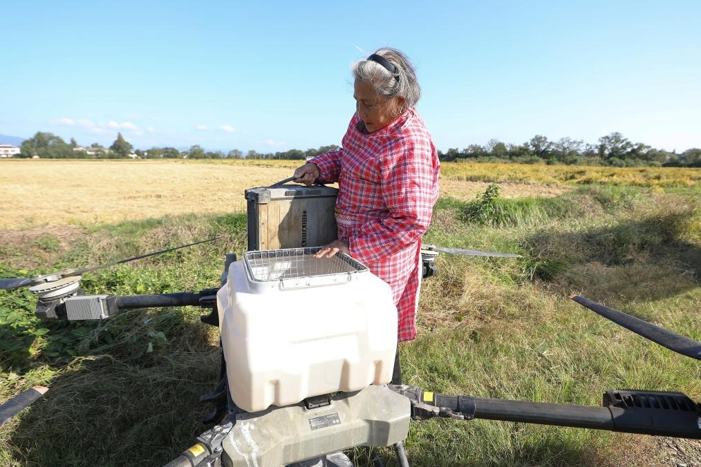 慢慢地,她也能幫忙搬運無人機、裝電池、展開機翼、灌肥料等等。每當她操作植保無人機起飛,準確無誤地完成設定的工作程序後,她既讚歎現代科技的發達,也產生了很大的成就感。