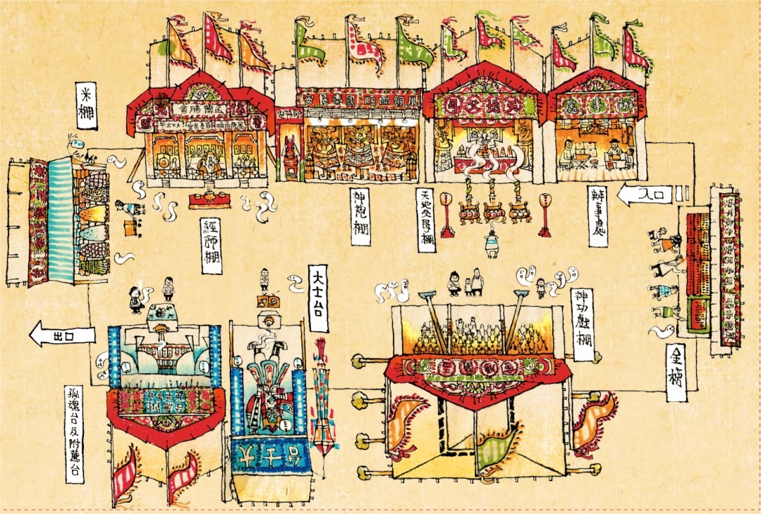 香港潮人盂蘭勝會一般設有9個竹棚示意圖