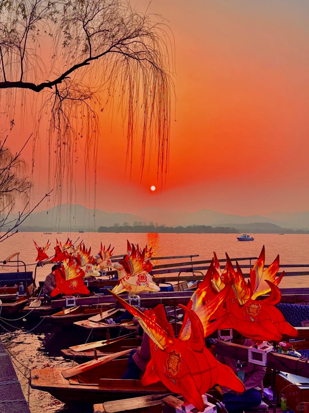 移步西湖,更有30艘「馬年福氣船」搖曳湖中,船頭懸掛的宋韻小馬燈精巧別緻,在波光中勾勒出「船在畫中游」的獨特年味。